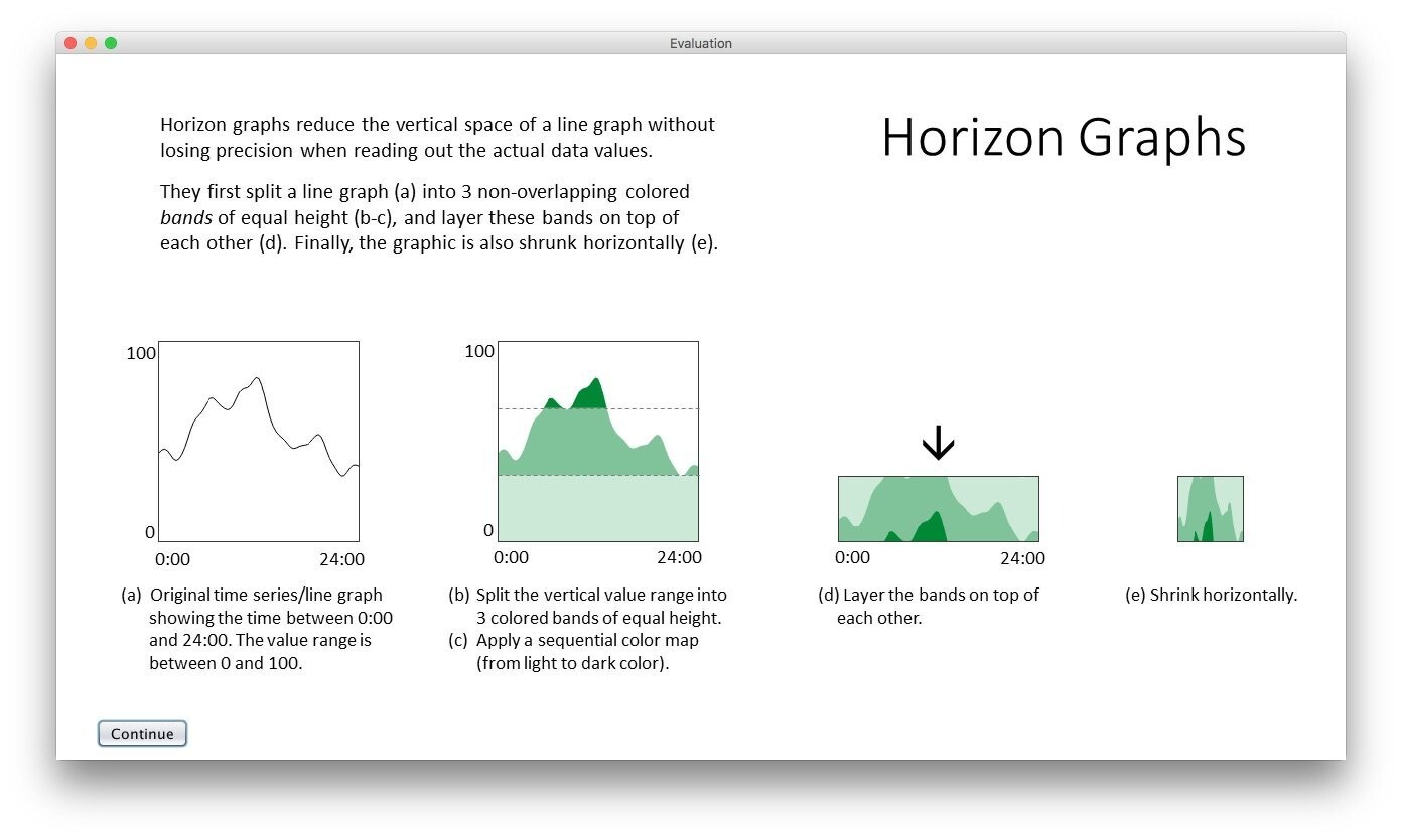 Screenshot from the study prototype explaining one of the four visualization techniques - Horizon Graphs (HG)