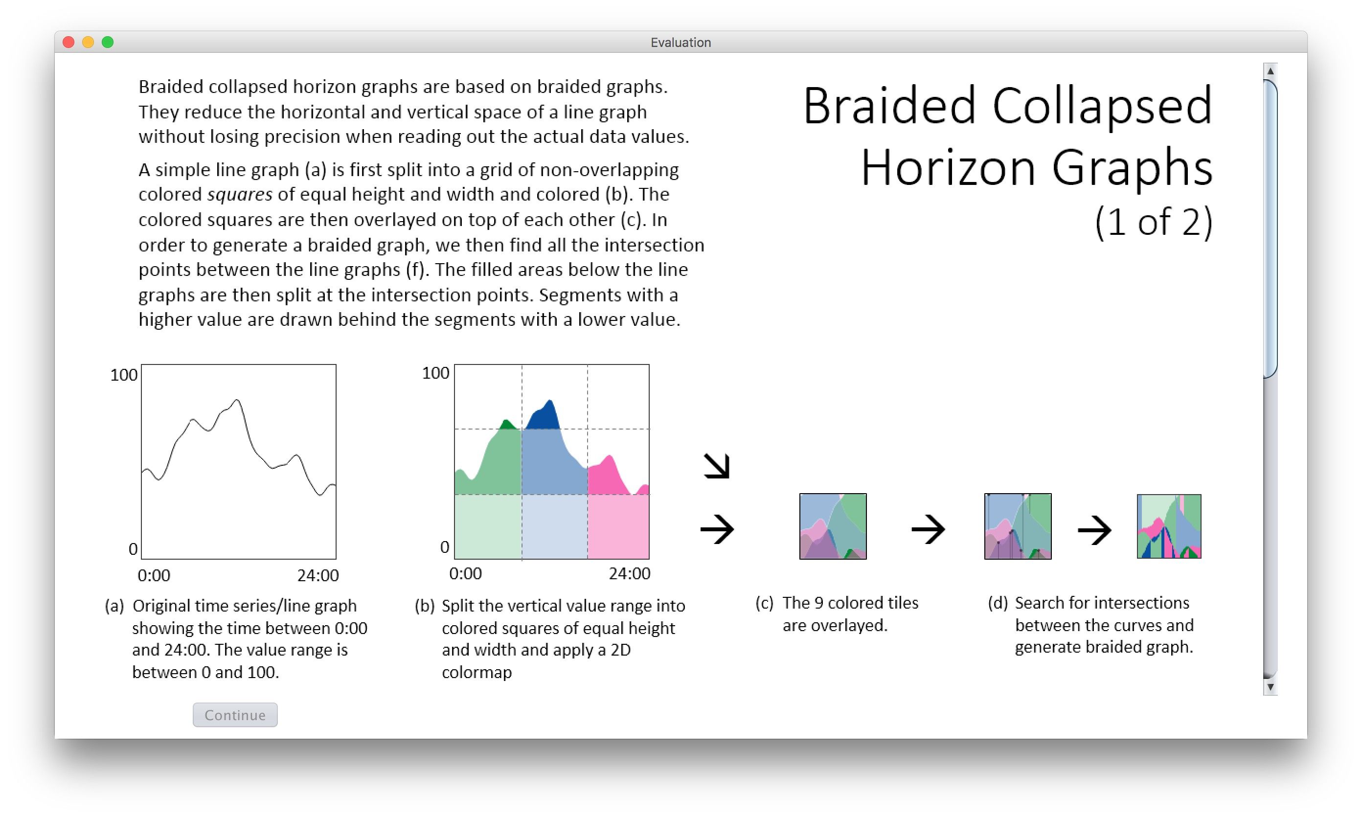 Screenshot from the study prototype explaining one of the four visualization techniques - Braided Collapsed Horizon Graphs (BHG) - 1