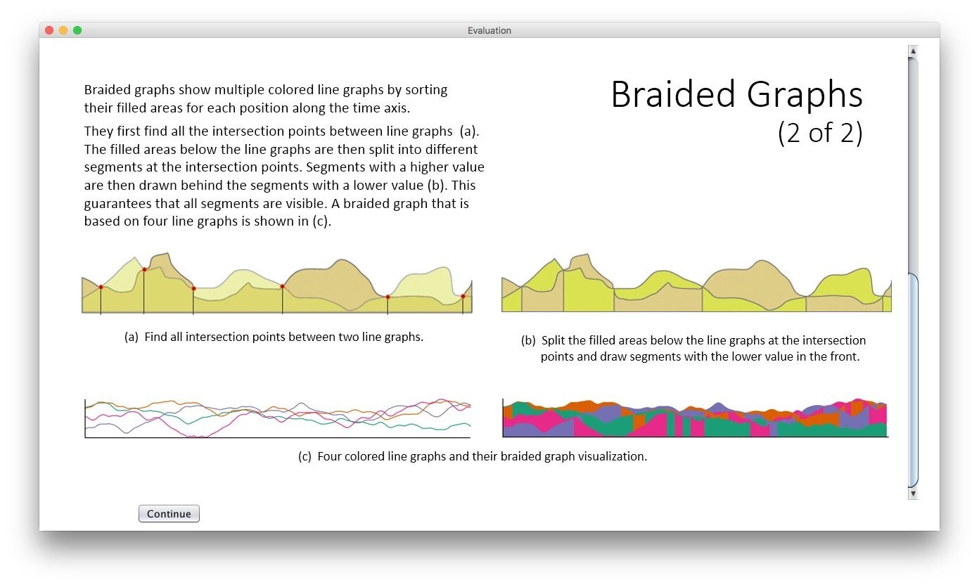 Screenshot from the study prototype explaining one of the four visualization techniques - Braided Collapsed Horizon Graphs (BHG) - 2