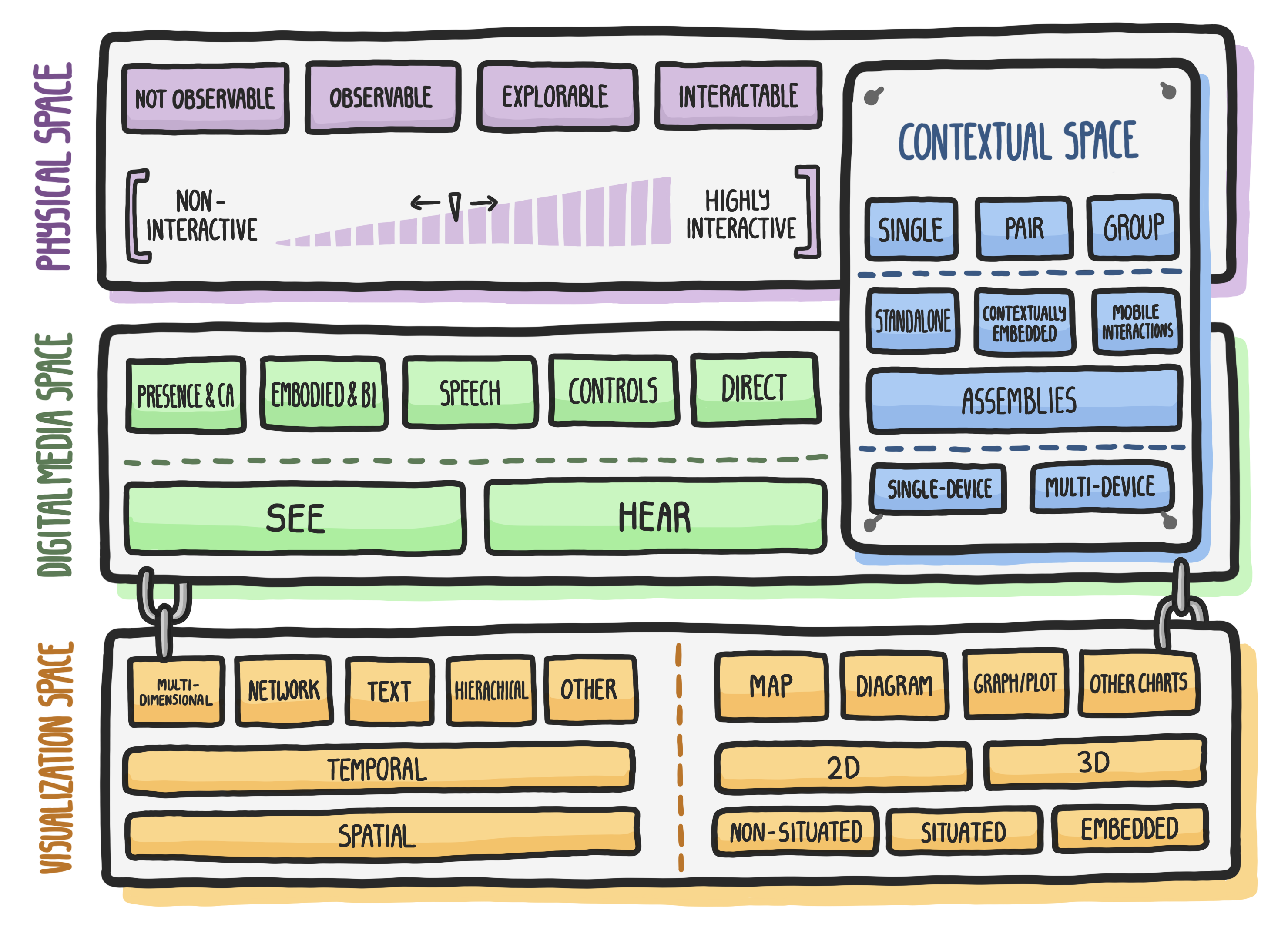 Generalizing our Design Space. The dimensions of Physical Space are changed to type of physical referent (same categorization) and type of environment (changing the categorization to from non-interactive to highly interactive).